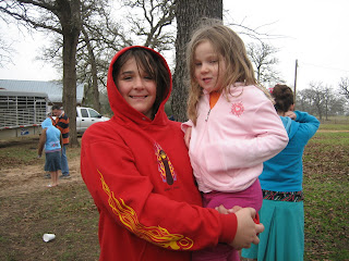 Miscellaneous photos of different one's around the place. If everyone had made it this year we'd have had 65 there. Instead we had about 50. A fun time seemed to be had by all who made it. If you missed it, you missed a great time. The weather cooperated with us and it only sprinkled a little all day. It was about 60 degrees and overcast but perfect for being around the fire.Laci Castleberry, Jordyn Ingram and Chesney Dial down at the barn